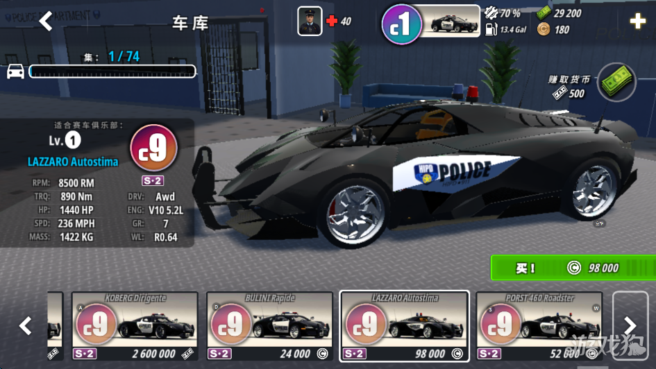 14、并且游戏中拥有从C1到C9不同等级的若干警车。