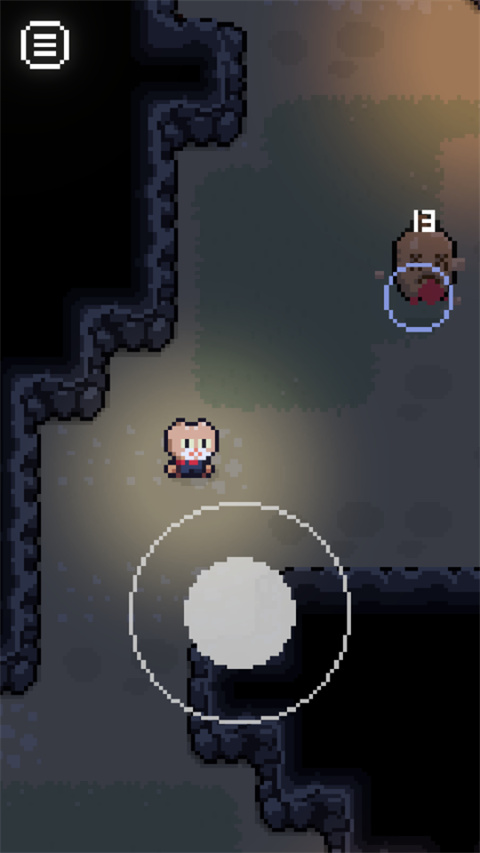 1.像素探索场景中,操控角色移动至红色框内【白色圆形】操作区,沿楼梯下探,开启洞穴探索流程