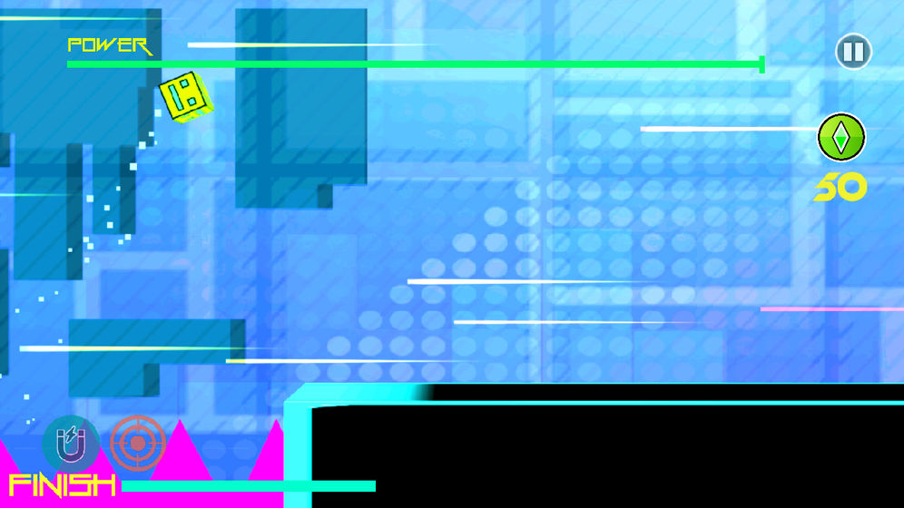 几何冲刺dash是一款画面简洁卡通的休闲横版过关游戏,全新打造了一款非常虐心的闯关游戏,不要被简洁的卡通界面骗了,大量尖刺构成陷阱成为绝对无法踏足的地方,玩家需要正确的控制方块人在地图中到处跳跃,通过短距离的飞行快速接近对手的地方,并且使用冲刺飞跃的办法到达终点。