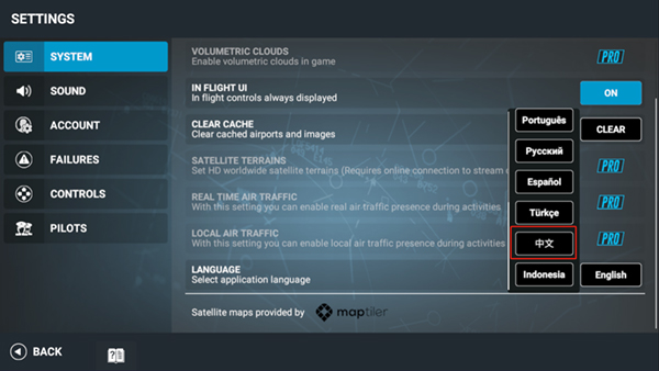 1、首先进入rfs模拟飞行游戏中,点击左下角的【设置】图标