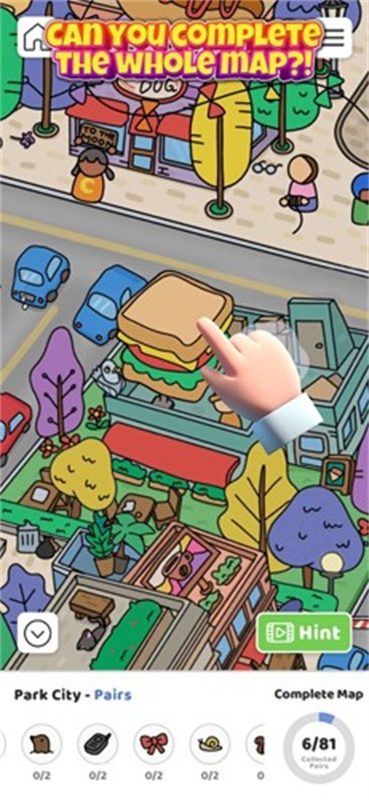 在游戏中,你需要根据关卡要求,在每个场景中寻找集齐所有的隐藏物品并解锁下一个区域,从闹市到树林,每个场景里都能看到可爱小人和动物们忙碌的样子,非常治愈,每个场景中都有一些非常隐蔽的小东西,藏得巨深,非常难找,很考验玩家的眼力和专注度,如果实在找不到隐藏的小物品,还可以使用提示帮你快速通关,玩法非常简单,不管是通勤还是上班摸鱼,绝对是你消磨时间的黄金搭档!