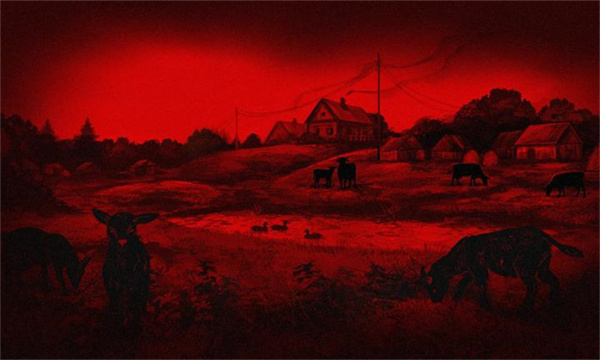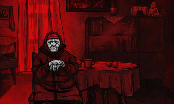 2、通过红黑高饱和手绘风格与黑暗配乐营造压抑诡谲的氛围。