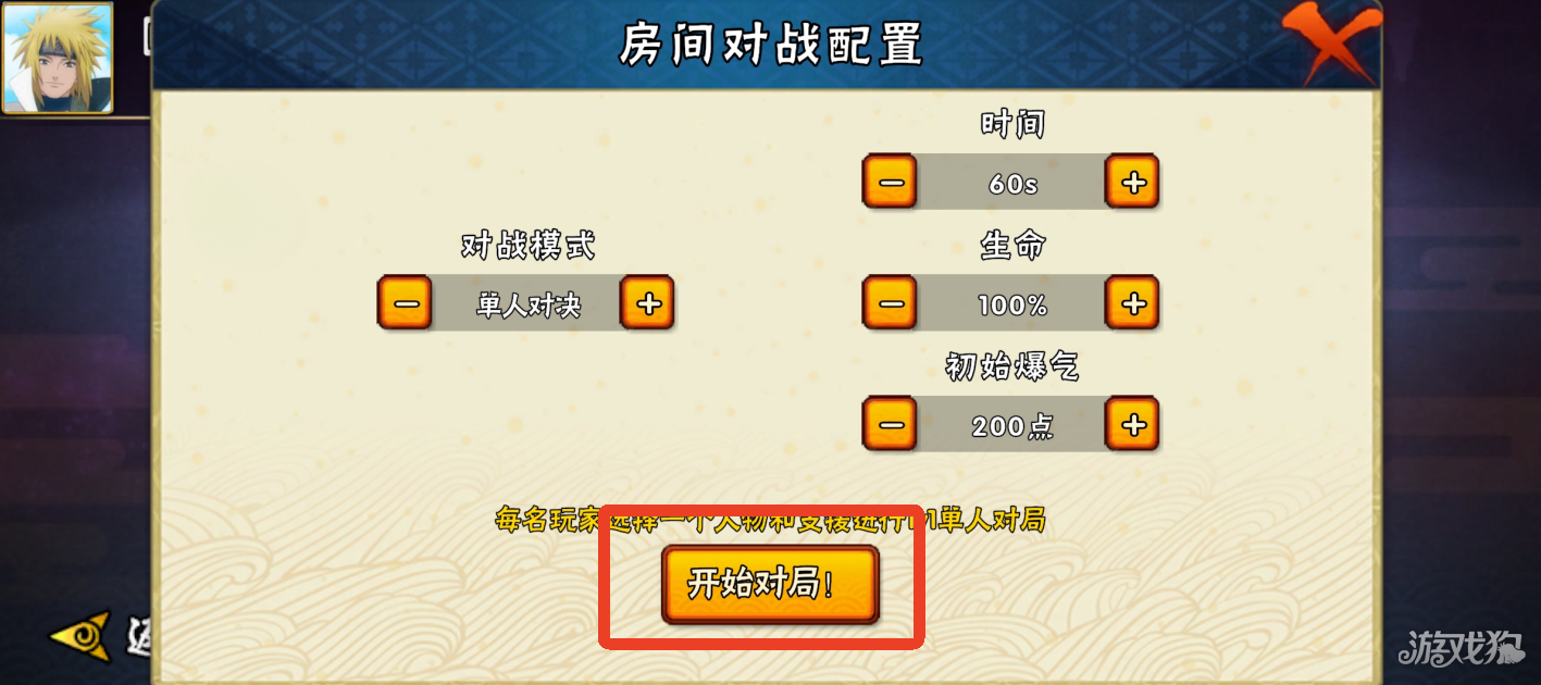 2、点击下方开始创建房间,设置房间对战配置后点击【开始对局】。