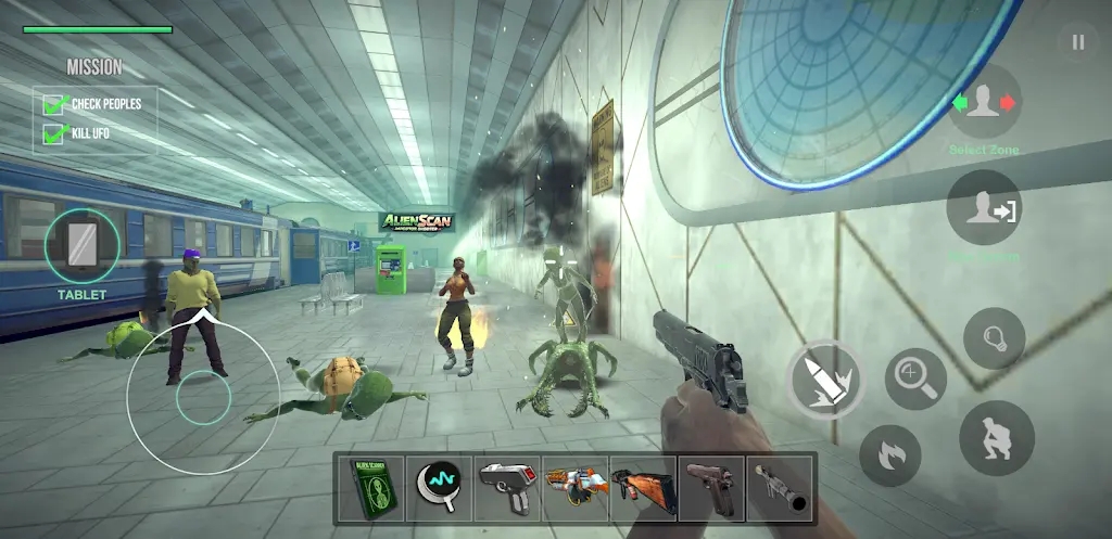 AR实景扫描融合:调用手机摄像头扫描现实环境,外星人可能"藏"在你的书桌、街道或天空。AR叠加层显示能量波动、异常信号,虚实结合让每次探索充满未知惊喜,代入感远超纯虚拟场景。