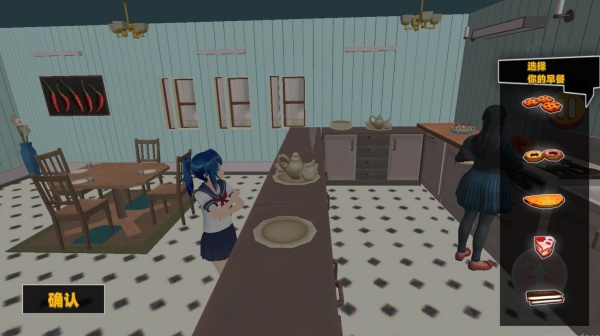 4、控制角色来到厨房以后,就会出现四个不同的早餐可以选择。