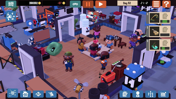 2、装饰度:接着解释上面提到的大厂房问题。每个房间是有装饰度的,装饰度越低工人休息的越多(游戏中是工人头顶电量)。所以需要一开始就把房间装饰和休息室布置好再开局接单招人,装饰度可以从右上角房间装饰度点开后移到房间查看。大厂房是套内面积(不算墙)100-200,装饰度-25;巨大厂房是套内面积>200,装饰度-50。奖杯的作用是装饰×2还自带装饰,有这个前期都不需要太多隔间直接巨大厂房,这样可以提高房屋使用率和方便小人移动,扩建的时候也只需要规划好地然后拆墙(不然得建门还得买一套装饰品)。游戏里装饰都是减倍原则,我一般都是每个房间每样买两套就足够了。