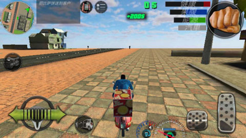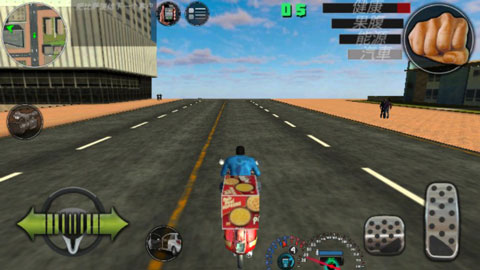 左侧遥感控制角色行动,右侧一系列的动作,攻击和武器切换简单的熟悉一下也容易上手,紧接着下方在遇到事项会触发,例如走到车边上会跳出上车的按钮,中上方还有许多系统按钮,例如打车,电话,任务都是在这里获取。
