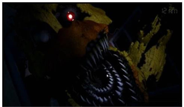2、后半夜是玩家比较忙碌的时候,除了前面要做的事情外,中间的狐狸来了,第一次到来时跟第三夜一样有声音和柜子门的提示,但是接下来它还是持续想打开柜子门出来。而且提示不是很明显,需要加入巡查的循环里,会使玩家更加手忙脚乱,只要记住按照左、右、中间再后面的顺序持续到六点就过了。(具体的操作说明会比较简单,但是带入实际的游戏环境还是会变得比较困难,细心些、速度快些就可以通关了)