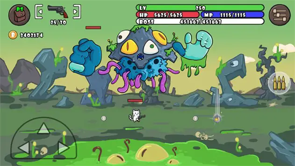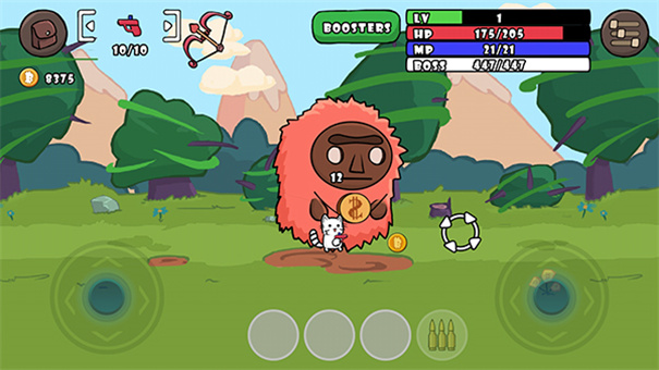 一枪世界猫手机版是一款休闲卡通风格的横版RPG冒险游戏,在游戏中你将扮演一只猫咪特攻,独自前往森林关卡中进行冒险,每一关都有非常多强势的魔物等你来消灭,你可以使用手中的枪械来击杀它们。在一枪世界毛官方版手游中,你还可以前往健身房中进行锻炼从而提升你的基础属性,这样在面对后续关卡时就能够有足够的实力应战,每个关卡都有一些特殊的物品掉落,不过这都是概率事件。