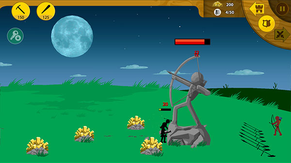 看着一个个火柴人士兵和对面混战一起,尤其是后期数量很多的时候,观赏性真的很不错,比较好玩的就是你可以选择巨人和弓箭手,当一个老六站在后面偷袭,或者是一巴掌一大片的巨人。