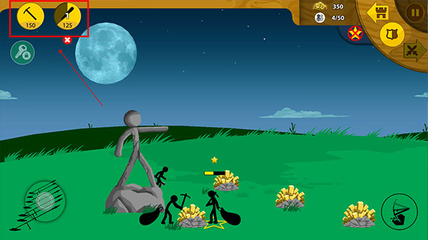 3、点击右上方,可以创造专门挖矿和进攻的士兵;