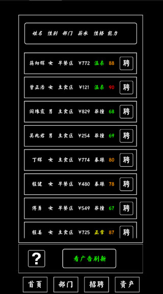 5.招聘一些厨师,每个员工都有不同的特性,你需要合理招聘