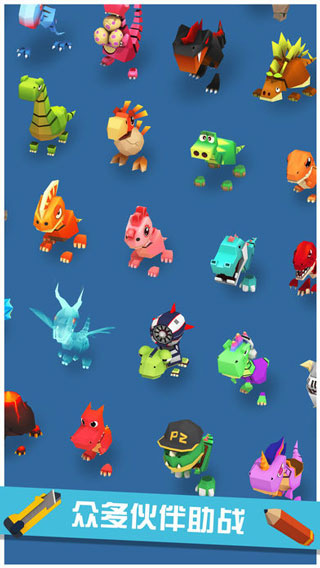 1.集结多样史前萌物,与骷髅、涡轮龟、金刚、剑龙等伙伴一同展开奇妙冒险