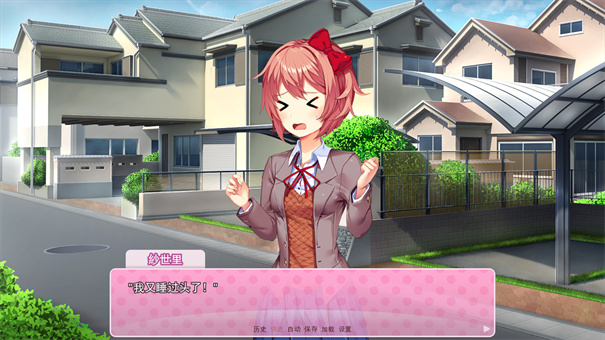 转过天来,去学校遇到monika,在monika的建议下去sayori家接她——在进sayori家之前存档。开始新游戏。