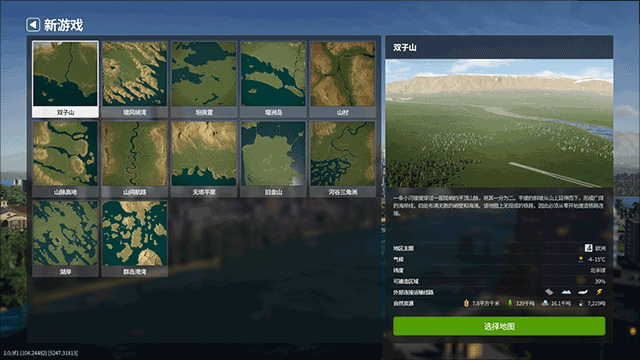 选择一个地图来设置城市的气候。您需要克服这些自然因素,在污染加剧、气候变化与季节带来的挑战中拓展您的城市。