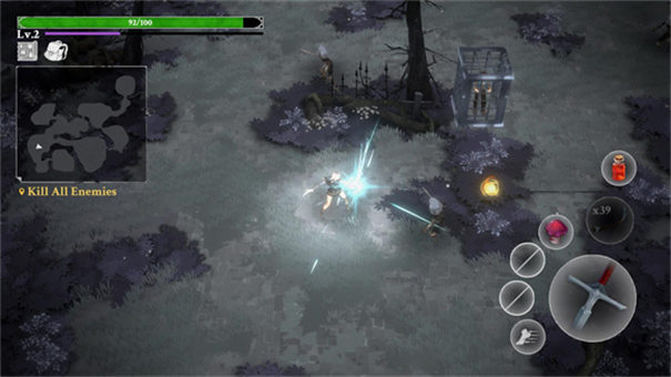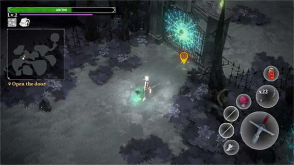 1、进入灵魂猎手地牢汉化版游戏后,左手控制角色移动