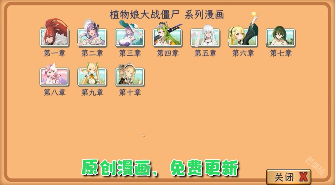 8、游戏内中还可以看到作者植物娘大战僵尸的全系列漫画,免费更新观看;