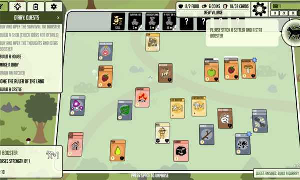堆叠村庄官方正版是一款策略卡牌冒险游戏,在堆叠村庄官方正版中,,玩家通过堆叠卡牌来发展村庄,每张卡牌都有不同的含义,表示村民、建筑、资源或事件等,需按配方组合堆叠才能进行升级获得新的卡牌效果。游戏内有超多卡牌需要收集,还有职业和战斗系统,需进行boss战,玩法多样刺激,感兴趣的玩家试试看堆叠村庄官方正版吧!
