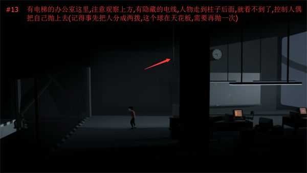 13.有电梯的办公室这里,注意观察上浮,有隐藏的电线,任务走到柱子后面就看不到了