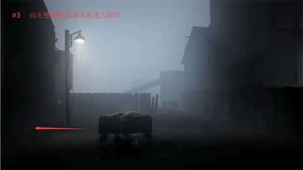 3、游戏依旧以黑、白、灰的冷色调画面进行,而玩家控制的男孩确实一袭红衣,显得尤为醒目;