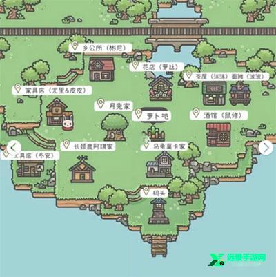 1、地图解锁的顺序是:村公所、月兔家、萝卜地、码头。依照顺序解锁长颈鹿家、乌龟家、花店、工具店、茶馆面摊、酒吧