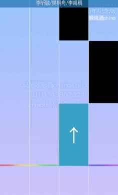技巧二:因为追求的是速度,在直行很多白块儿时你如果单点每一个白块儿则很慢,手也很容易累,推荐大家左右手大拇指(凭自己喜好)一起点,两只手指快一倍,但要注意不要点多或点少了,这个需要锻炼也需要直行的运气。总之碰到直行你就赚大了