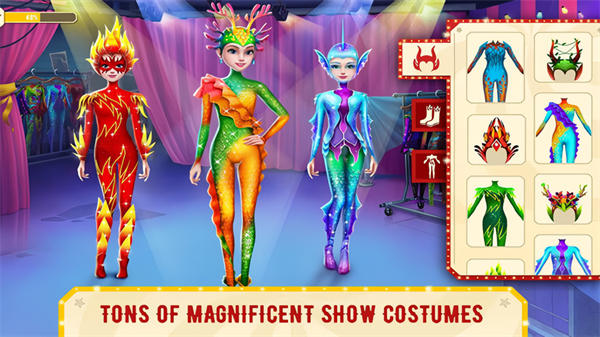 个性化明星养成:为演员定制闪亮服装、精致妆容与华丽配饰,根据表演风格打造专属形象,让每位杂技明星都闪耀个性光芒!