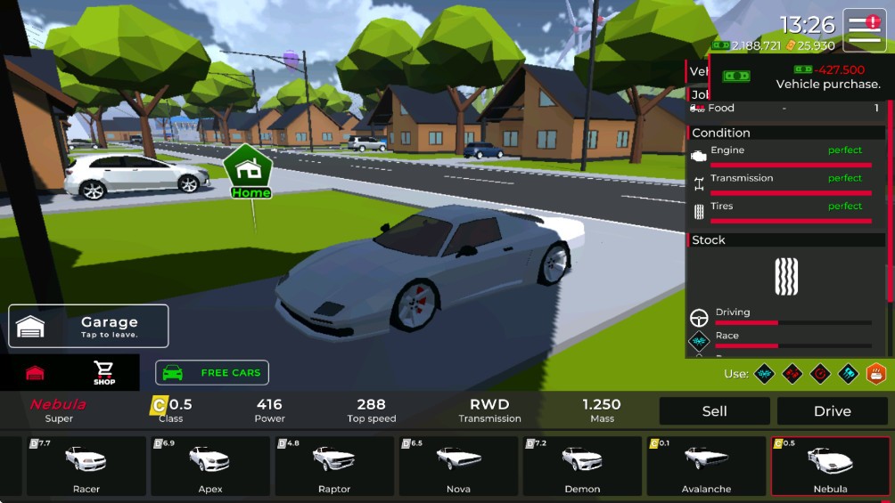 生活化角色成长:赛车不仅赢奖金,还可购置房产(带车库与泳池),装修个性化空间。角色服饰、发型可自由搭配,社会地位随赛事声望提升,NPC会主动打招呼,从车手到车坛大佬身份蜕变真实可感。