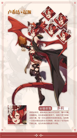 多莉在幼年时就能幻化为龙形,并在永夜圣殿学习如何控制这股力量,每次化龙都是她的一次挑战,闪耀的鳞片与展阔的双翼就是她给自己最好的奖励。