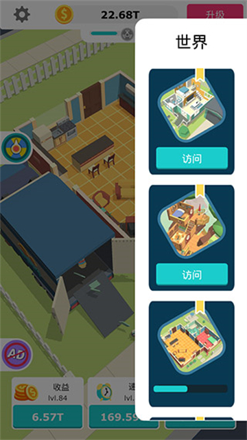 3、开工后,房子每完成一项装饰就可以获得一笔金币收益,可以在右上角升级。