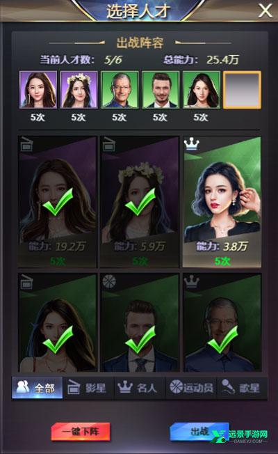 众多人才可供选择,你不是一个人在战斗!演艺圈、体育圈、名人圈,只要你想挖的人才,统统都有可能成为你的左膀右臂!