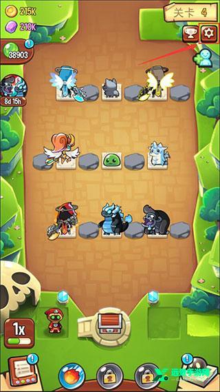 1、首先我们可以看到,游戏中的9个格子都占满了怪物,这个时候我们如果要给怪物换位置,就先点击右上角的齿轮图标。