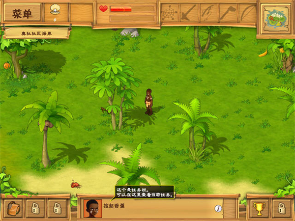 4.探索途中,我们可抵达地图下方位置获取香蕉,随后在背包中灵活使用,为生存增添助力。