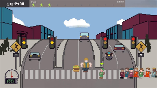 过马路模拟器真正还原steam的玩法风格,熟悉的BGM以及老师的口哨声,指挥小朋友有序的走进斑马线,在红灯到来之际,快速通过马路,完成通关。
