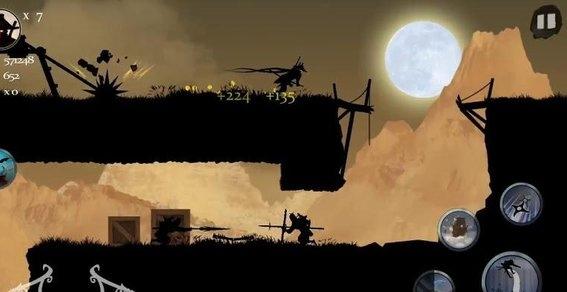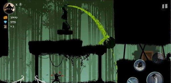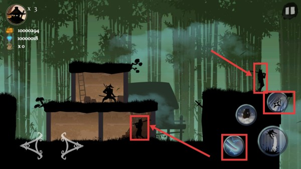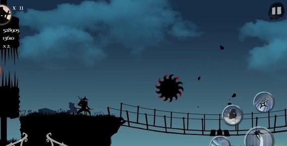 3.遭遇敌方武士角色时,使用右侧技能按钮(如飞镖、闪电攻击)进行反击,击败敌人可提升连击次数,积累战斗收益