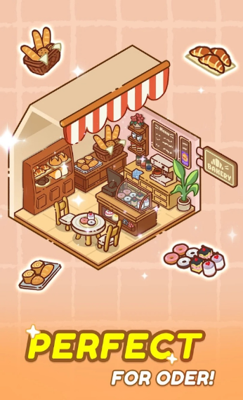 1.可爱的画风会给你最轻松的游玩体验,每关都会有新的店铺场景将等你去选择来挑战
